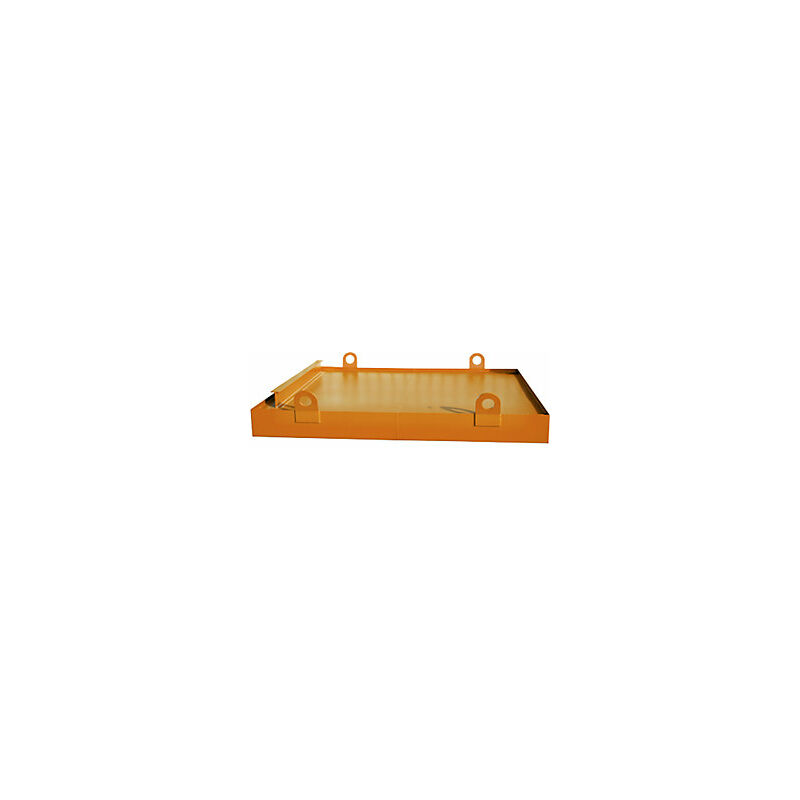 Vasca di raccolta per container da appoggio, per container da appoggio, capacità di raccolta 1036 l, arancione. Fornitura = montato. Capacità di raccolta = 1036 l. Lunghezza = 2800 mm. Larghezza = 2030 mm. Altezza = 560 mm. Materiale = lamiera d'acciaio. Superficie = verniciatura. Colore = arancione RAL 2000. Versione vasca di raccolta = con copertura. Portata = 20000 kg. Altezza entrate forche = 120 mm. Marchio di collaudo = omologazione generale (DiBt) Berlino. Spessore materiale = 3 mm. Per sostanze = liquidi infiammabili e inquinanti per le acque. Classi di pericolosità = per liquidi infiammabili delle categorie GHS 1 - 3 e per liquidi inquinanti per le acque delle categorie GHS 1 - 4. Carico distribuito = 20000 kg. Per lo stoccaggio di container con materiali di scarto contenenti emulsioni, oli da taglio, oli ecc. Coperchio della vasca come protezione contro la contaminazione dei liquidi raccolti. Possibilità di spostamento con carrello elevatore e con gru. Omologazione generale