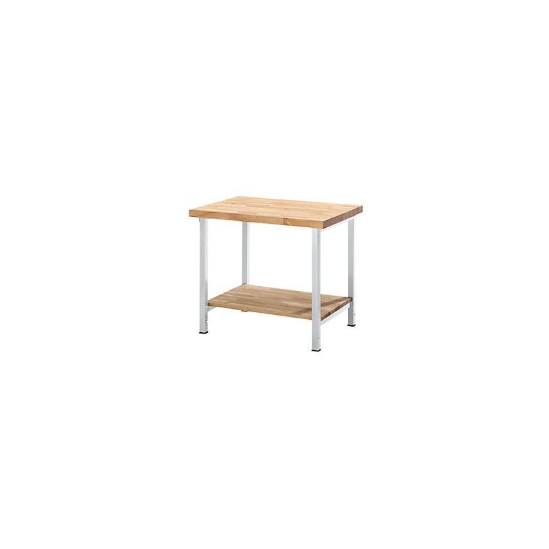 Banco da lavoro regolabile in altezza, struttura modulare, 1 ripiano, larghezza 750 mm, telaio grigio chiaro. Fornitura = montato. Larghezza piano = 750 mm. Profondità piano = 700 mm. Tipo di piano = piano in faggio massello. Spessore piano = 40 mm. Altezza = 1040 mm. Campo di regolazione altezza = 840 - 1040 mm. Materiale telaio = acciaio, verniciato a polvere. Portata statica = 1250 kg. Versione telaio = tubo a sezione quadra 45x45 mm. Colore telaio = grigio chiaro RAL 7035. Numero ripiani = 1 pz. Impiego: industria, officina, reparti produzione e montaggio ecc. Piano di lavoro in faggio massello non soggetto a deformazioni, spesso 40 mm. Robusta struttura in lamiera d'acciaio verniciata a polvere. Telaio a tubi quadri, 45 x 45 mm. Altezza regolabile da 840 a 1040 mm. Tutti i piedini con messa in piano. Piani in faggio massello, spessore 40 mm. Profondità piano 700 mm. I banchi da lavoro sono disponibili anche con piano di lavoro universale o in lamiera d'acciaio al posto del