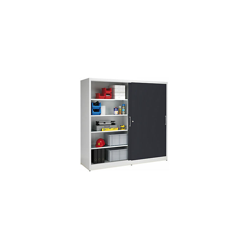 Armadietto con ante scorrevoli di alta qualità, perfetto per l'organizzazione dello spazio in azienda, ufficio, magazzino o archivio. Con parete divisoria e 8 ripiani regolabili in altezza, offre una portata di 75 kg per ripiano. La struttura robusta in lamiera d'acciaio, verniciata a forno, garantisce resistenza e durata nel tempo. Le eleganti impugnature e la serratura a cilindro con nucleo sostituibile rendono l'utilizzo pratico e sicuro. Grazie alle ante scorrevoli senza ingombro e alle battute silenziose, è l'ideale per spazi ridotti. Con questa soluzione di stoccaggio efficiente e funzionale, migliorare l'organizzazione e la gestione degli spazi sarà facilissimo!