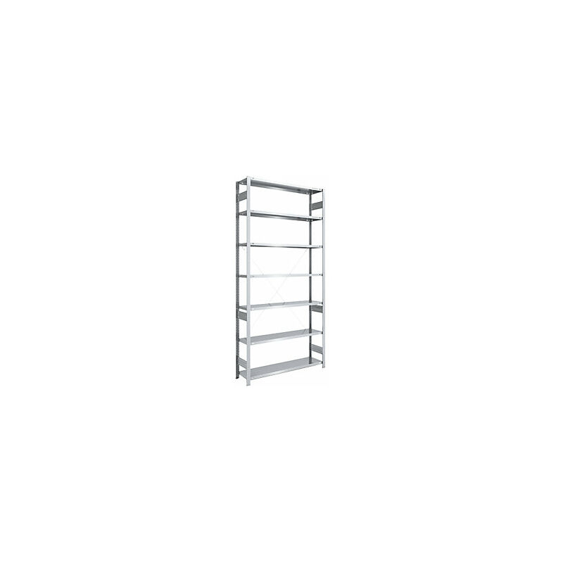 Scaffale lungo a innesto, zincato, altezza 3000 mm, portata campata 1700 kg, scaffale portante, largh. x prof. 1300 x 400 mm. Fornitura = smontato. Colore montanti = zincatura. Altezza scaffale = 3000 mm. Versione di scaffale = un lato utile. Tipo di scaffale = scaffale portante. Materiale = acciaio, zincato. Struttura = a innesto. Passo di regolazione altezza ripiani = 25 mm. Profondità totale = 435 mm. Larghezza totale = 1360 mm. Portata campata = 1700 kg. Portata ripiani = 215 kg. Colore ripiani = zincatura. Profondità ripiani = 400 mm. Larghezza ripiani = 1300 mm. Numero ripiani = 7 pz. Tipo di prodotto = scaffali a innesto a campata larga. 30% di spazio in più grazie alla larghezza ripiani di 1300 mm - larghezza utile tra i montanti = 1250 mm. Ideali per l'impiego con merci ingombranti e contenitori di dimensioni Euro. Su un ripiano possono essere posizionati affiancati tre contenitori larghi 400 mm ciascuno. Con zincatura. Ripiani regolabili in altezza con passo di 25 mm. Ripiani
