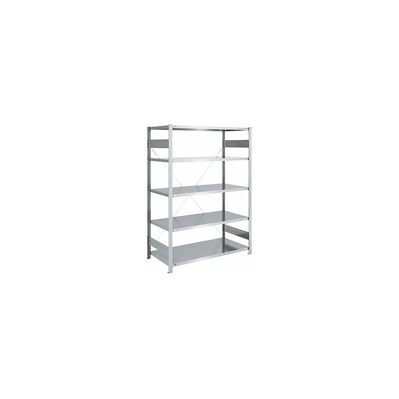 Scaffale lungo a innesto, zincato, altezza 2000 mm, portata campata 1600 kg, scaffale portante, largh. x prof. 1300 x 800 mm. Fornitura = smontato. Colore montanti = zincatura. Altezza scaffale = 2000 mm. Versione di scaffale = un lato utile. Tipo di scaffale = scaffale portante. Materiale = acciaio, zincato. Struttura = a innesto. Passo di regolazione altezza ripiani = 25 mm. Profondità totale = 835 mm. Larghezza totale = 1360 mm. Portata campata = 1600 kg. Portata ripiani = 240 kg. Colore ripiani = zincatura. Profondità ripiani = 800 mm. Larghezza ripiani = 1300 mm. Numero ripiani = 5 pz. Tipo di prodotto = scaffali a innesto a campata larga. 30% di spazio in più grazie alla larghezza ripiani di 1300 mm - larghezza utile tra i montanti = 1250 mm. Ideali per l'impiego con merci ingombranti e contenitori di dimensioni Euro. Su un ripiano possono essere posizionati affiancati tre contenitori larghi 400 mm ciascuno. Con zincatura. Ripiani regolabili in altezza con passo di 25 mm. Ripiani