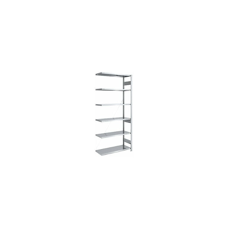 Scaffale a innesto per carichi pesanti, zincato, altezza scaffale 2500 mm, scaffale aggiuntivo, largh. x prof. 1000 x 500 mm. Fornitura = smontato. Tipo di scaffale = scaffale aggiuntivo. Portata ripiani = 330 kg. Portata campata = 2500 kg. Altezza scaffale = 2500 mm. Larghezza totale = 1010 mm. Profondità totale = 535 mm. Materiale = acciaio. Numero ripiani = 6 pz. Colore montanti = zincatura. Colore ripiani = zincatura. Passo di regolazione altezza = 25 mm. Molto robusti per carichi elevati. Con un lato utile. Ripiani indeformabili regolabili in altezza con passo di 25 mm. Telai portanti con piastre di connessione a incastro e piastre di appoggio salvapavimento. Dimensioni esterne Larghezza: scaffale portante 1060 / 1360 mm, scaffale aggiuntivo 1010 / 1310 mm. Profondità: profondità ripiani + 35 mm. Portata per campata: 2000 mm = 3000 kg 2500 mm = 2500 kg 3000 mm = 2100 kg Se l'altezza dello scaffale è superiore al quintuplo della sua profondità, è necessario ancorare