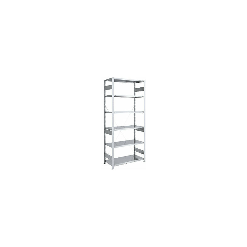 Scaffale a innesto per carichi pesanti, zincato, altezza scaffale 2500 mm, scaffale portante, largh. x prof. 1000 x 600 mm. Fornitura = smontato. Tipo di scaffale = scaffale portante. Portata ripiani = 330 kg. Portata campata = 2500 kg. Altezza scaffale = 2500 mm. Larghezza totale = 1060 mm. Profondità totale = 635 mm. Materiale = acciaio. Numero ripiani = 6 pz. Colore montanti = zincatura. Colore ripiani = zincatura. Passo di regolazione altezza = 25 mm. Molto robusti per carichi elevati. Con un lato utile. Ripiani indeformabili regolabili in altezza con passo di 25 mm. Telai portanti con piastre di connessione a incastro e piastre di appoggio salvapavimento. Dimensioni esterne Larghezza: scaffale portante 1060 / 1360 mm, scaffale aggiuntivo 1010 / 1310 mm. Profondità: profondità ripiani + 35 mm. Portata per campata: 2000 mm = 3000 kg 2500 mm = 2500 kg 3000 mm = 2100 kg Se l'altezza dello scaffale è superiore al quintuplo della sua profondità, è necessario ancorare