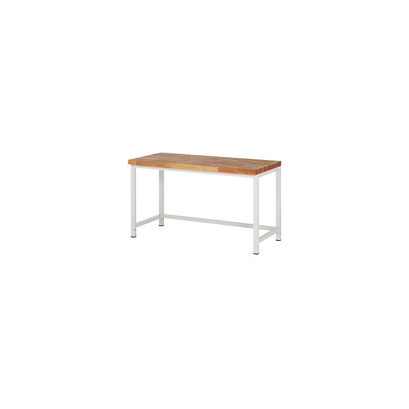 Banco da lavoro, struttura a telaio serie 8000, senza accessori, largh. x prof. 1500 x 700 mm. Fornitura = montato. Larghezza piano = 1500 mm. Profondità piano = 700 mm. Tipo di piano = piano in faggio massello. Spessore piano = 40 mm. Altezza = 840 mm. Colore corpo = grigio chiaro RAL 7035. Colore frontalino = blu chiaro RAL 5012. Versione cassetti = guida a rulli. Portata per cassetto = 100 kg. Estrazione cassetti = 90%. Larghezza cassetti = 490 mm. Profondità cassetti = 560 mm. Materiale telaio = acciaio, verniciato a polvere. Portata statica = 1250 kg. Versione telaio = tubo a sezione quadra 45x45 mm. Colore telaio = grigio chiaro RAL 7035. Durevoli e stabili - ideali per l'impiego quotidiano nel settore industriale. Profondità 700 o 900 mm - per una superficie di lavoro ancora maggiore. Consegnati montati e pronti all'uso. Telaio saldato con piedini in tubo d'acciaio profilato (45 x 45 mm) in grigio chiaro RAL 7035. Portata statica superficie 1250 kg. Corpo con verniciatura a
