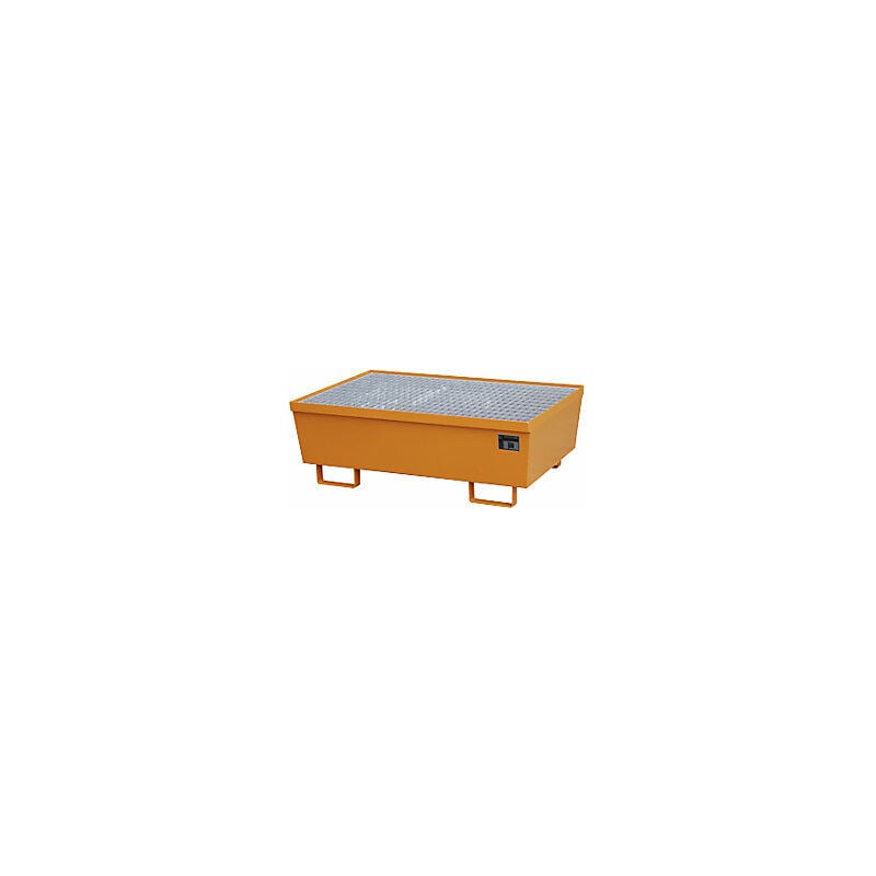 Vasca di raccolta in acciaio con bordo profilato, per 2 fusti da 200 l, arancione RAL 2000. Fornitura = montato. Versione griglia = con griglia zincata. Capacità fusti = 2x200 l. Capacità di raccolta = 225 l. Lunghezza = 1200 mm. Larghezza = 800 mm. Altezza = 415 mm. Materiale = lamiera d'acciaio. Superficie = verniciatura. Colore = arancione RAL 2000. Portata = 1000 kg/m². Altezza entrate forche = 100 mm. Marchio di collaudo = ÜHP secondo la direttiva StawaR. Spessore materiale = 3 mm. Per sostanze = liquidi infiammabili e inquinanti per le acque. Classi di pericolosità = per liquidi infiammabili delle categorie GHS 1 - 3 e per liquidi inquinanti per le acque delle categorie GHS 1 - 4. Carico distribuito = 1000 kg/m². Con griglia zincata (portata 1000 kg/m²). Particolarmente robuste e durevoli grazie al bordo profilato su due lati. Entrata forche, per un trasporto facile e sicuro con transpallet o carrello elevatore, altezza entrata forche 100 mm. Per il magazzinaggio a norma di fusti
