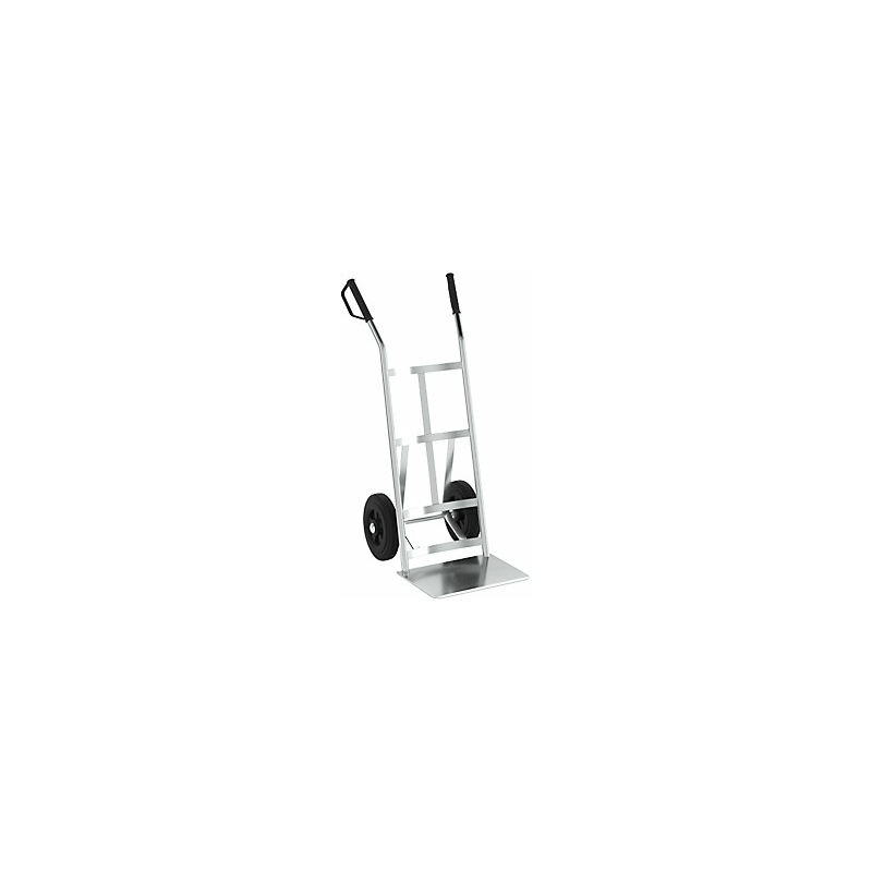 Carrello per sacchi in acciaio, zincato, con traverse convesse, ruote in gomma antiforo. Fornitura = montato. Versione = con traverse tubolari convesse. Portata = 350 kg. Larghezza pala = 400 mm. Profondità pala = 250 mm. Versione ruote = ruote in gomma piena. Diametro ruote = 250 mm. Cuscinetti ruota = cuscinetto a rulli. Materiale = acciaio. Colore = zincatura elettrolitica. Superficie = zincatura. Altezza totale = 1060 mm. Larghezza totale = 480 mm. Peso = 12 kg. Portata elevata di 350 kg. Resistenti alle intemperie grazie alla zincatura a fuoco. Impugnature di sicurezza con protezione per le mani. Ricambi garantiti per tutti i componenti. Completamente premontati e pronti per l'uso. Saldato, zincatura a fuoco di lunga durata e qualità comprovata nell'impiego quotidiano. Le ruote scorrevoli con cuscinetti a rulli permettono di spostare con facilità carichi pesanti. Il piano di appoggio molto resistente in lamiera d'acciaio e le traverse tubolari convesse completano questo carrello