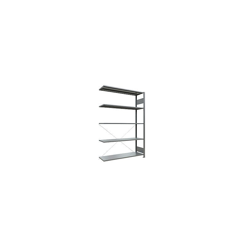 Scaffale a innesto, a fila singola, largh. x prof. ripiano 1300 x 400 mm, zincato, altezza 2000 mm, scaffale aggiuntivo. Fornitura = smontato. Tipo di scaffale = scaffale aggiuntivo. Numero ripiani = 5 pz. Profondità ripiani = 400 mm. Portata ripiani = 150 kg. Altezza scaffale = 2000 mm. Larghezza totale = 1306 mm. Struttura = a innesto. Colore montanti = zincatura. Larghezza ripiani = 1300 mm. Profondità totale = 436 mm. Materiale = acciaio, zincato. Passo di regolazione altezza ripiani = 25 mm. Materiale ripiani = lamiera d'acciaio, zincata. Versione di scaffale = un lato utile. Scaffale a innesto in acciaio estremamente stabile con lavorazione di alta qualità. Montaggio e conversione rapidi e senza attrezzi. Possibilità di combinare elementi di base e aggiuntivi. Disponibili diverse larghezze, altezze e profondità. Con marchio di qualità RAL-RG 614. Ideali per magazzini, officine, aziende, cantina ecc. Vasta gamma di accessori: dorso e pareti laterali zincati, divisori per ripiani
