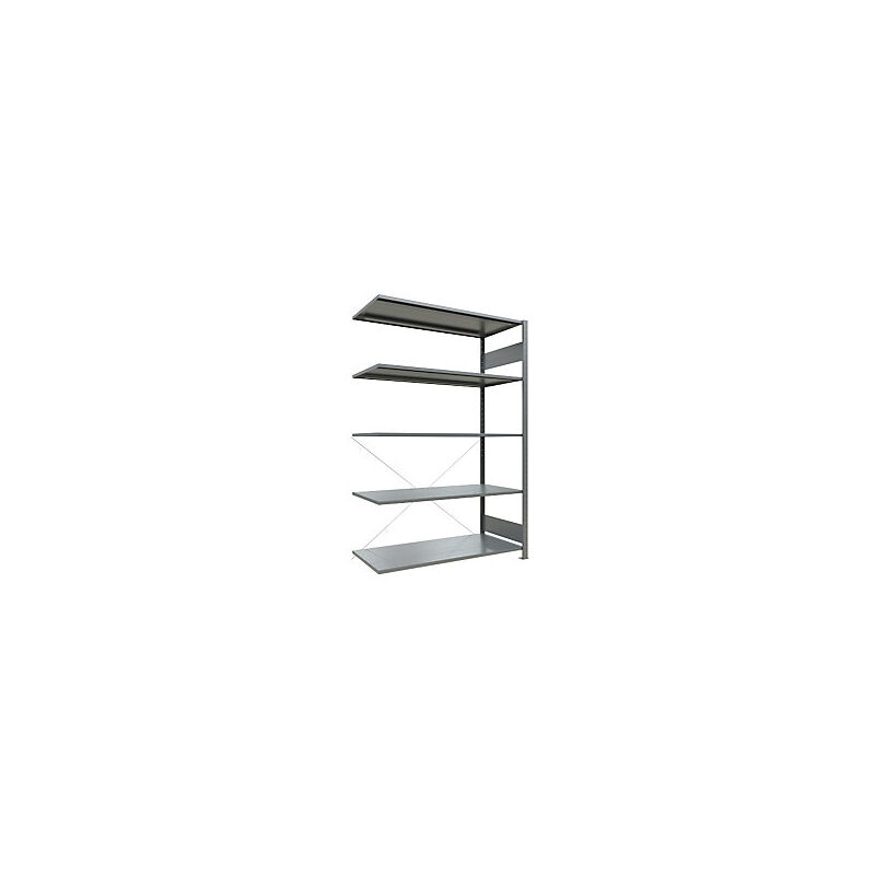 Scaffale a innesto, a fila singola, largh. x prof. ripiano 1300 x 600 mm, zincato, altezza 2000 mm, scaffale aggiuntivo. Fornitura = smontato. Tipo di scaffale = scaffale aggiuntivo. Numero ripiani = 5 pz. Profondità ripiani = 600 mm. Portata ripiani = 150 kg. Altezza scaffale = 2000 mm. Larghezza totale = 1306 mm. Struttura = a innesto. Colore montanti = zincatura. Larghezza ripiani = 1300 mm. Profondità totale = 636 mm. Materiale = acciaio, zincato. Passo di regolazione altezza ripiani = 25 mm. Materiale ripiani = lamiera d'acciaio, zincata. Versione di scaffale = un lato utile. Scaffale a innesto in acciaio estremamente stabile con lavorazione di alta qualità. Montaggio e conversione rapidi e senza attrezzi. Possibilità di combinare elementi di base e aggiuntivi. Disponibili diverse larghezze, altezze e profondità. Con marchio di qualità RAL-RG 614. Ideali per magazzini, officine, aziende, cantina ecc. Vasta gamma di accessori: dorso e pareti laterali zincati, divisori per ripiani