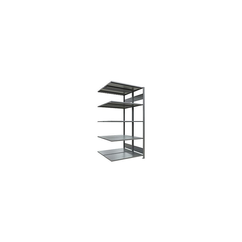 Scaffale a innesto, a fila doppia, largh. x prof. ripiano 1000 x (2 x 500) mm, zincato, altezza 2000 mm, scaffale aggiuntivo. Fornitura = smontato. Tipo di scaffale = scaffale aggiuntivo. Numero ripiani = 2x5 pz. Profondità ripiani = 500 mm. Portata ripiani = 250 kg. Altezza scaffale = 2000 mm. Larghezza totale = 1006 mm. Portata campata = 1800 kg. Struttura = a innesto. Colore montanti = zincatura. Larghezza ripiani = 1000 mm. Profondità totale = 1072 mm. Materiale = acciaio, zincato. Passo di regolazione altezza ripiani = 25 mm. Materiale ripiani = lamiera d'acciaio, zincata. Versione di scaffale = due lati utili. Montaggio e conversione rapidi, senza attrezzi e senza viti. Robusto scaffale in acciaio per carichi pesanti. Possibilità di montaggio su due file per ridurre le distanze. Possibilità di combinare elementi di base e aggiuntivi. Disponibili diverse larghezze, altezze e profondità. Con marchio di qualità RAL-RG 614. Vasta gamma di accessori: dorso e pareti laterali zincati