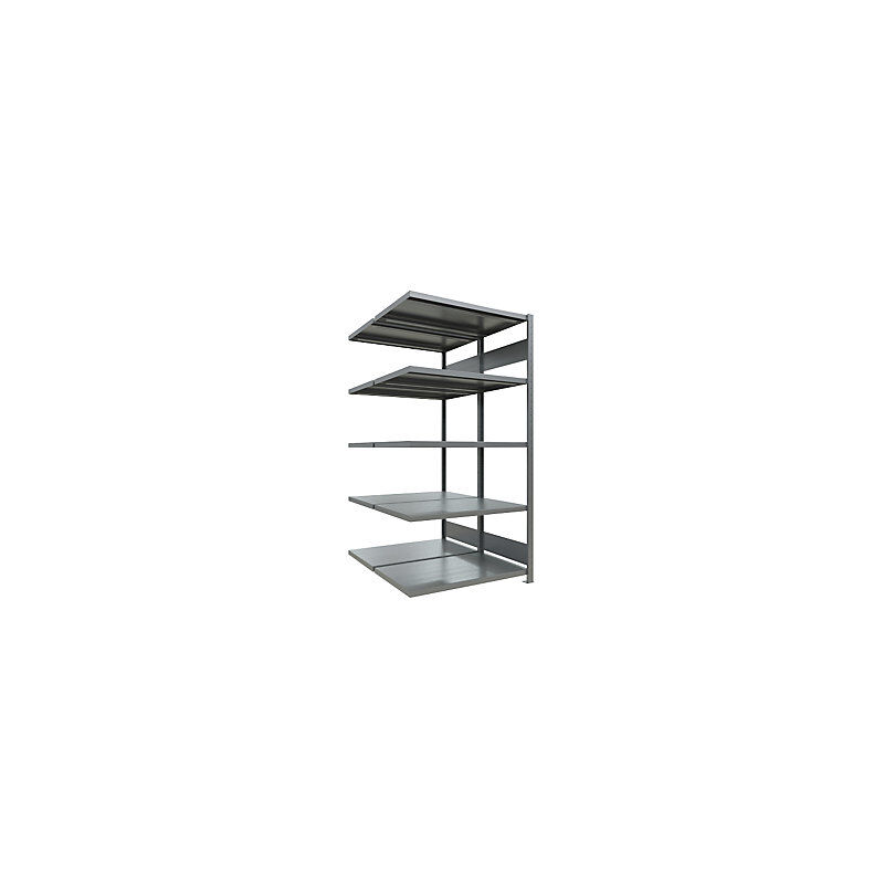 Scaffale a innesto, a fila doppia, largh. x prof. ripiano 1300 x (2 x 600) mm, zincato, altezza 2000 mm, scaffale aggiuntivo. Fornitura = smontato. Tipo di scaffale = scaffale aggiuntivo. Numero ripiani = 2x5 pz. Profondità ripiani = 600 mm. Portata ripiani = 250 kg. Altezza scaffale = 2000 mm. Larghezza totale = 1306 mm. Portata campata = 1800 kg. Struttura = a innesto. Colore montanti = zincatura. Larghezza ripiani = 1300 mm. Profondità totale = 1272 mm. Materiale = acciaio, zincato. Passo di regolazione altezza ripiani = 25 mm. Materiale ripiani = lamiera d'acciaio, zincata. Versione di scaffale = due lati utili. Montaggio e conversione rapidi, senza attrezzi e senza viti. Robusto scaffale in acciaio per carichi pesanti. Possibilità di montaggio su due file per ridurre le distanze. Possibilità di combinare elementi di base e aggiuntivi. Disponibili diverse larghezze, altezze e profondità. Con marchio di qualità RAL-RG 614. Vasta gamma di accessori: dorso e pareti laterali zincati