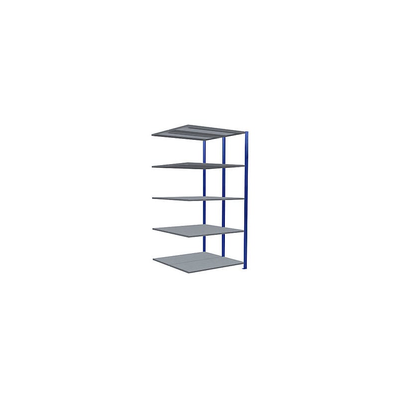 Scaffale a innesto, a fila doppia, largh. x prof. ripiano 1300 x (2 x 500) mm, blu, altezza 2000 mm, scaffale aggiuntivo. Fornitura = smontato. Tipo di scaffale = scaffale aggiuntivo. Numero ripiani = 2x5 pz. Profondità ripiani = 500 mm. Portata ripiani = 250 kg. Altezza scaffale = 2000 mm. Larghezza totale = 1306 mm. Portata campata = 1800 kg. Struttura = a innesto. Colore montanti = blu genziana RAL 5010. Larghezza ripiani = 1300 mm. Profondità totale = 1072 mm. Materiale = acciaio, verniciato a polvere. Passo di regolazione altezza ripiani = 25 mm. Materiale ripiani = lamiera d'acciaio, zincata. Versione di scaffale = due lati utili. Montaggio e conversione rapidi, senza attrezzi e senza viti. Robusto scaffale in acciaio per carichi pesanti. Possibilità di montaggio su due file per ridurre le distanze. Possibilità di combinare elementi di base e aggiuntivi. Disponibili diverse larghezze, altezze e profondità. Con marchio di qualità RAL-RG 614. Vasta gamma di accessori: dorso e