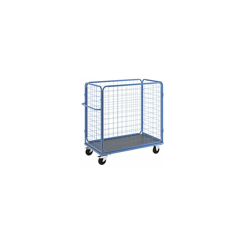 Carrello per pacchi, alt. x largh. x prof. 1500 x 1550 x 800 mm, portata 350 kg. Fornitura = smontato. Portata = 350 kg. Larghezza = 1550 mm. Profondità = 800 mm. Altezza = 1500 mm. Superficie = verniciatura a polvere. Dotazione ruote = 2 rotelle pivottanti con fermo doppio, 2 rotelle a supporto fisso. Versione ruote = gomma piena. Diametro ruote = 160 mm. Cuscinetti ruota = cuscinetto a rulli. Materiale pianale con ruote = piano in MDF, verniciato. Altezza sponde = 1260 mm. Larghezza interna = 1380 mm. Profondità interna = 735 mm. Altezza interna = 1260 mm. Dimensioni maglie griglia laterale = 100x100 mm. Dimensioni maglie griglia posteriore = 100x100 mm. Dimensioni maglie parete anteriore = 100x100 mm. Versatili - entrambi i lati lunghi amovibili. Pratici - per imballi grandi e piccoli. Comodi - Impugnatura saldata. L'impugnatura e le rotelle pivottanti permettono di spostarsi in modo flessibile verso il luogo di utilizzo. I freni di stazionamento mantengono il carrello saldamente in
