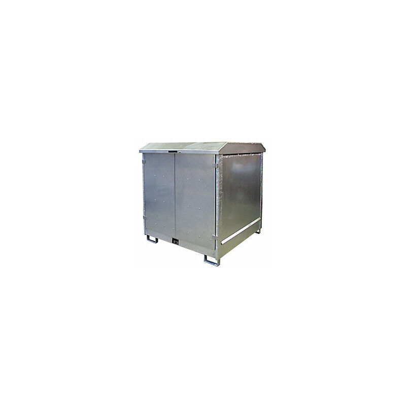 Deposito per sostanze pericolose, con 2 ante a battente e entrate forche, per 4 fusti da 200 litri, zincati. Fornitura = montato. Altezza esterna = 1557 mm. Larghezza esterna = 1437 mm. Profondità esterna = 1500 mm. Capacità fusti = 4x200 l. Capacità di raccolta = 220 l. Colore = zincatura. Superficie = zincatura. Marchio di collaudo = omologazione generale (DiBt) Berlino. Materiale = lamiera d'acciaio. Serratura = serratura a cilindro. Tipo di porta = anta a battente. Luogo d'impiego = per interni ed esterni. Per sostanze = liquidi infiammabili e inquinanti per le acque. Classi di pericolosità = per liquidi infiammabili delle categorie GHS 1 - 3, per liquidi inquinanti per le acque delle categorie GHS 1 - 4. Peso = 302 kg. Per il magazzinaggio interno ed esterno passivo di liquidi infiammabili. Tetto con ammortizzatori a gas per una maneggevolezza ottimale. Ventilazione naturale. Per il magazzinaggio di fusti da 200 litri e piccole taniche. In lamiera d'acciaio zincata. Tetto con