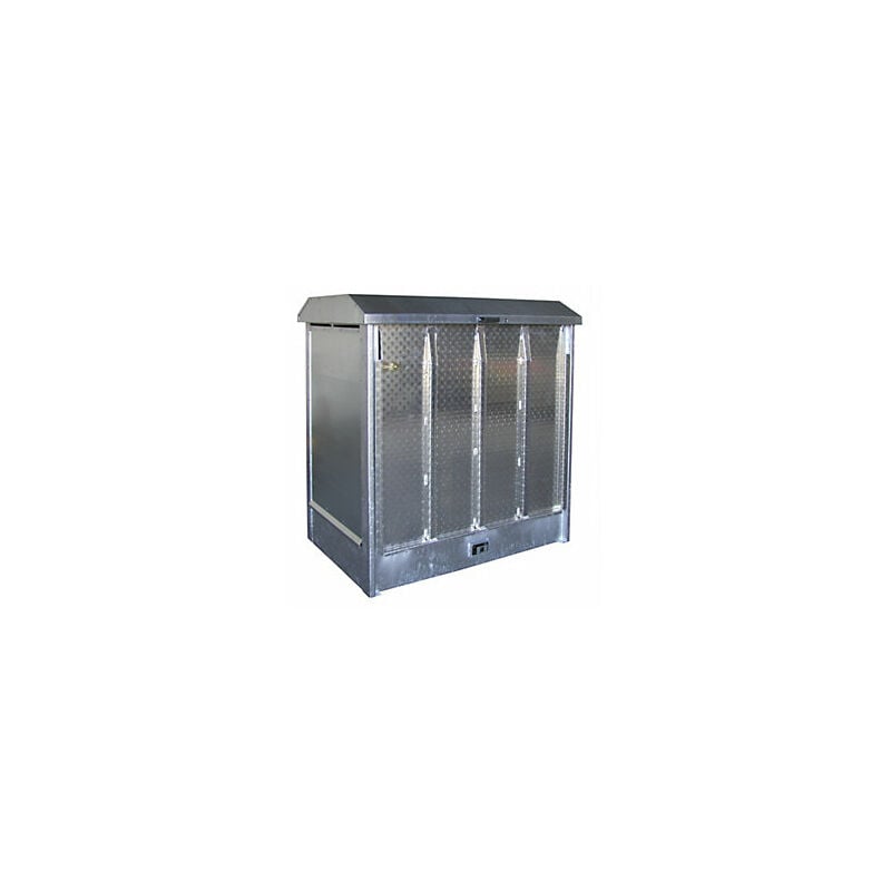 Deposito per sostanze pericolose, con anta in alluminio da usare come rampa d'accesso, per 2 fusti da 200 litri, zincati. Fornitura = montato. Altezza esterna = 1514 mm. Larghezza esterna = 1437 mm. Profondità esterna = 1015 mm. Capacità fusti = 2x200 l. Capacità di raccolta = 210 l. Colore = zincatura. Superficie = zincatura. Marchio di collaudo = omologazione generale (DiBt) Berlino. Materiale = lamiera d'acciaio. Tipo di porta = anta ribaltabile. Luogo d'impiego = per interni ed esterni. Per sostanze = liquidi infiammabili e inquinanti per le acque. Classi di pericolosità = per liquidi infiammabili delle categorie GHS 1 - 3, per liquidi inquinanti per le acque delle categorie GHS 1 - 4. Peso = 224 kg. L'anta a battente in alluminio diventa una rampa carrabile. Per il magazzinaggio interno ed esterno passivo di liquidi infiammabili. Tetto con ammortizzatori a gas per una maneggevolezza ottimale. Ventilazione naturale. Per il magazzinaggio di fusti da 200 litri e piccole taniche. In