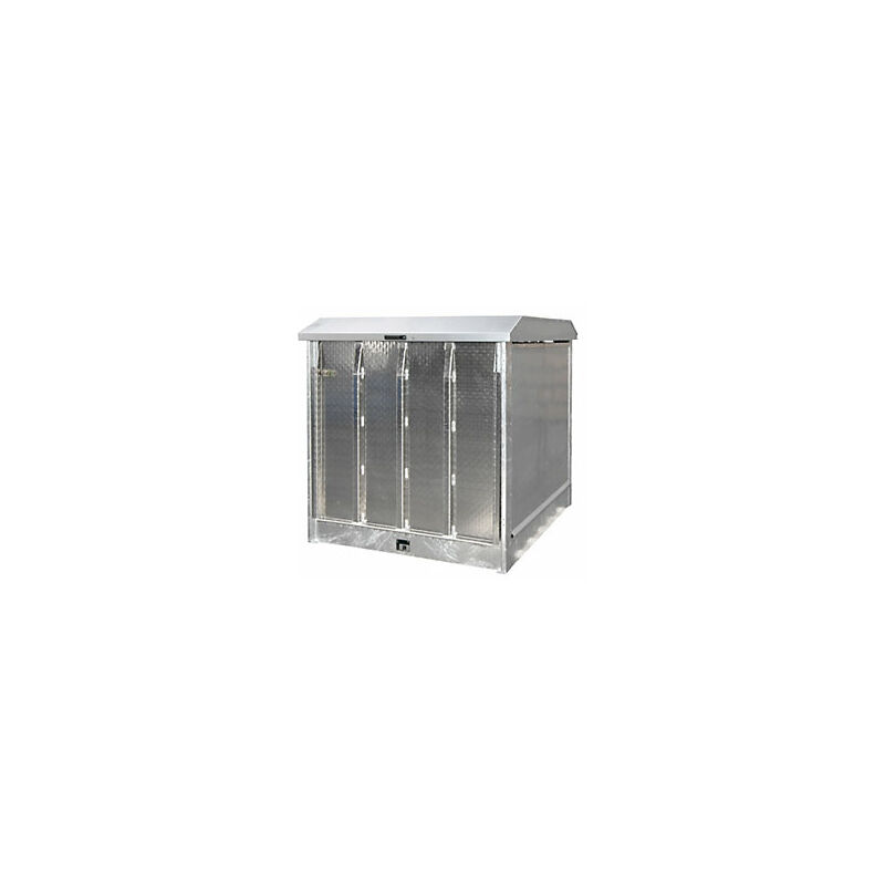 Deposito per sostanze pericolose, con anta in alluminio da usare come rampa d'accesso, per 4 fusti da 200 litri, zincati. Fornitura = montato. Altezza esterna = 1457 mm. Larghezza esterna = 1437 mm. Profondità esterna = 1500 mm. Capacità fusti = 4x200 l. Capacità di raccolta = 220 l. Colore = zincatura. Superficie = zincatura. Marchio di collaudo = omologazione generale (DiBt) Berlino. Materiale = lamiera d'acciaio. Tipo di porta = anta ribaltabile. Luogo d'impiego = per interni ed esterni. Per sostanze = liquidi infiammabili e inquinanti per le acque. Classi di pericolosità = per liquidi infiammabili delle categorie GHS 1 - 3, per liquidi inquinanti per le acque delle categorie GHS 1 - 4. Peso = 290 kg. L'anta a battente in alluminio diventa una rampa carrabile. Per il magazzinaggio interno ed esterno passivo di liquidi infiammabili. Tetto con ammortizzatori a gas per una maneggevolezza ottimale. Ventilazione naturale. Per il magazzinaggio di fusti da 200 litri e piccole taniche. In