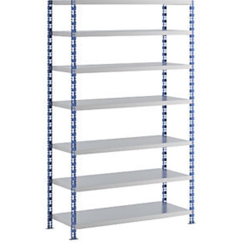 Scaffale a innesto a campata larga con ripiani in lamiera d'acciaio, profondità 600 mm, scaffale portante, alt. x largh. 2522 x 1550 mm. Fornitura = smontato. Colore montanti = blu traffico RAL 5017. Altezza scaffale = 2522 mm. Versione di scaffale = un lato utile. Tipo di scaffale = scaffale portante. Materiale = acciaio. Struttura = a innesto. Passo di regolazione altezza ripiani = 75 mm. Profondità totale = 600 mm. Larghezza totale = 1550 mm. Portata campata = 1400 kg. Portata ripiani = 200 kg. Materiale ripiani = lamiera d'acciaio. Profondità ripiani = 600 mm. Larghezza ripiani = 1500 mm. Numero ripiani = 7 pz. Luogo d'impiego = per interni. Tipo di prodotto = scaffali a innesto a campata larga. Ottimo rapporto qualità prezzo. Accurata verniciatura plastica. Ottimo sfruttamento dello spazio grazie a ripiani in cinque diverse profondità e scaffali in quattro altezze. Ideali per magazzini, uffici, archivi, officine. Passo di regolazione ripiano 75 mm. Montaggio a innesto semplice e
