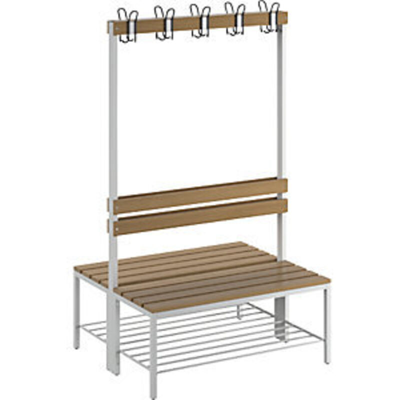 Vieni a scoprire la nuova Panca in faggio per spogliatoi di eurokraft basic, un prodotto unico nel suo genere che conferisce stile, funzionalità e comfort in un unico design. Realizzata con materiali di alta qualità, la panca è caratterizzata da un telaio in tubo d'acciaio verniciato a polvere, che garantisce resistenza e durata nel tempo. Le doghe in legno di faggio donano un tocco di eleganza e calore, mentre i ganci doppi in plastica permettono di appendere comodamente gli abiti. Le dimensioni della panca, con un'altezza di 1700 mm e una lunghezza di 1000 mm, la rendono ideale per l'utilizzo negli spogliatoi, garantendo comfort e praticità. Inoltre, la panca è dotata di uno schienale e di un'asta appendiabiti, offrendo la massima comodità all'utente. I piedini in plastica regolabili consentono di adattare l'altezza della panca alle proprie esigenze, fino a 25 mm. Grazie alla verniciatura a polvere in grigio chiaro RAL 7035, la panca si integra facilmente in qualsiasi