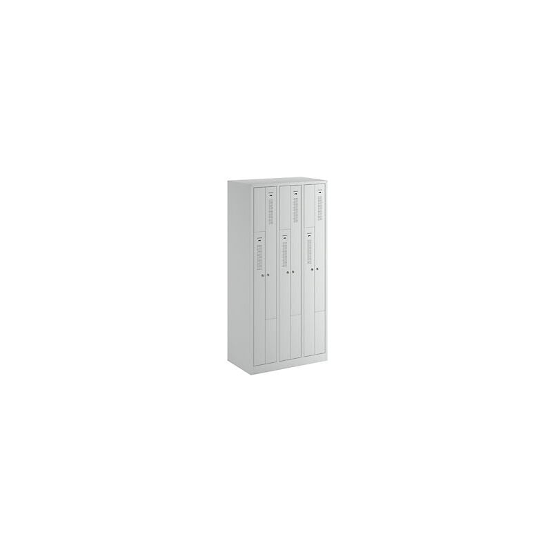 Con l'armadietto guardaroba con ante a Z AMSTERDAM, avrai finalmente uno spazio organizzato e funzionale per i tuoi abiti e accessori. Con 3 scomparti e 6 ante, puoi facilmente tenere tutto in ordine. Con una struttura robusta in lamiera d'acciaio verniciata a polvere, questo armadietto è progettato per durare nel tempo. Con la possibilità di appendere vestiti lunghi e aerazione attraverso i fori nelle ante, avrai tutto ciò di cui hai bisogno. Le serrature a cilindro e i ganci interni ti permettono di tenere al sicuro i tuoi effetti personali. Con un design unico e funzionale, l'armadietto AMSTERDAM ti offre la soluzione perfetta per mantenere l'ordine nel tuo spazio. Acquistalo ora e trasforma la tua vita quotidiana!