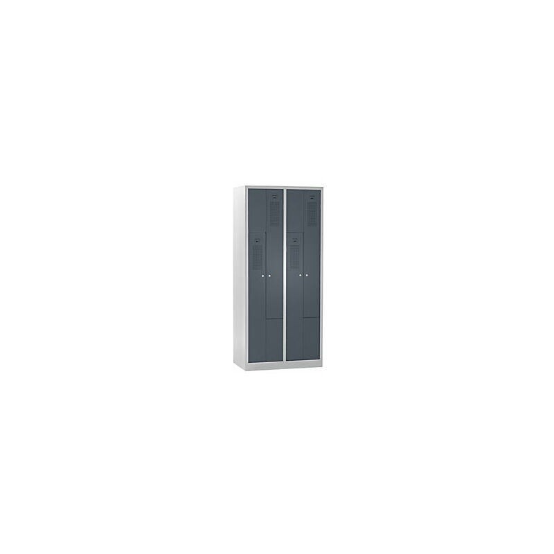 Con l'armadietto guardaroba con ante a Z AMSTERDAM avrai finalmente uno spazio organizzato e funzionale per riporre i tuoi capi d'abbigliamento in modo pratico e ordinato. Grazie alla sua larghezza di 800 mm e ai suoi 4 scomparti con 4 ante, avrai la possibilità di avere due armadietti in uno, ottimizzando lo spazio a disposizione. Realizzato in robusta lamiera d'acciaio con verniciatura a polvere di alta qualità, questo armadietto garantisce resistenza e durata nel tempo. Ogni vano è dotato di un'asta appendiabiti e 3 ganci, e grazie alla presenza dei fori di aerazione sulle ante, i tuoi vestiti saranno sempre ben conservati e asciutti. L'armadietto è dotato di serrature a cilindro differenziate per garantire la massima sicurezza dei tuoi indumenti. Con AMSTERDAM, la tua routine quotidiana sarà semplificata e organizzata in modo impeccabile. Acquistalo oggi e trasforma il tuo spazio in un ambiente ordinato e accogliente!