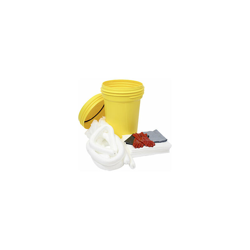 Set di emergenza contro le perdite, in fusto di sicurezza, assorbimento 100 l, versione per olio, bianco. Fornitura = montato. Fornitura = fusto di sicurezza UN, coperchio a vite, 50 panni in tessuto-non-tessuto 400x500 mm, 2 sacchi tubolari assorbenti Ø 75 mm x 1,2 m, 2 sacchi tubolari assorbenti Ø 75 mm x 3,0 m, 2 cuscini assorbenti 400x400 mm, 15 panni di pulizia, 5 sacchi per lo smaltimento, 1 paio di guanti. Versione = olio. Lunghezza = 560 mm. Larghezza = 420 mm. Altezza = 720 mm. Assorbimento = 100 l/conf. Materiale = polietilene (ad alta densità PE / HDPE), polipropilene. Colore = bianco. Situazione = reazione alle perdite (emergenza). Per sostanze = oli, benzina, gasolio ecc. Caratteristiche = assorbente. Tipo di perdita = versamenti, gocciolamento, perdite su superfici. Frequenza di utilizzo = singolo. Luogo d'impiego = per interni ed esterni. Sollecitazione = normale. Tipo di prodotto = set di materiali assorbenti. I prodotti assorbenti usati possono essere trasportati
