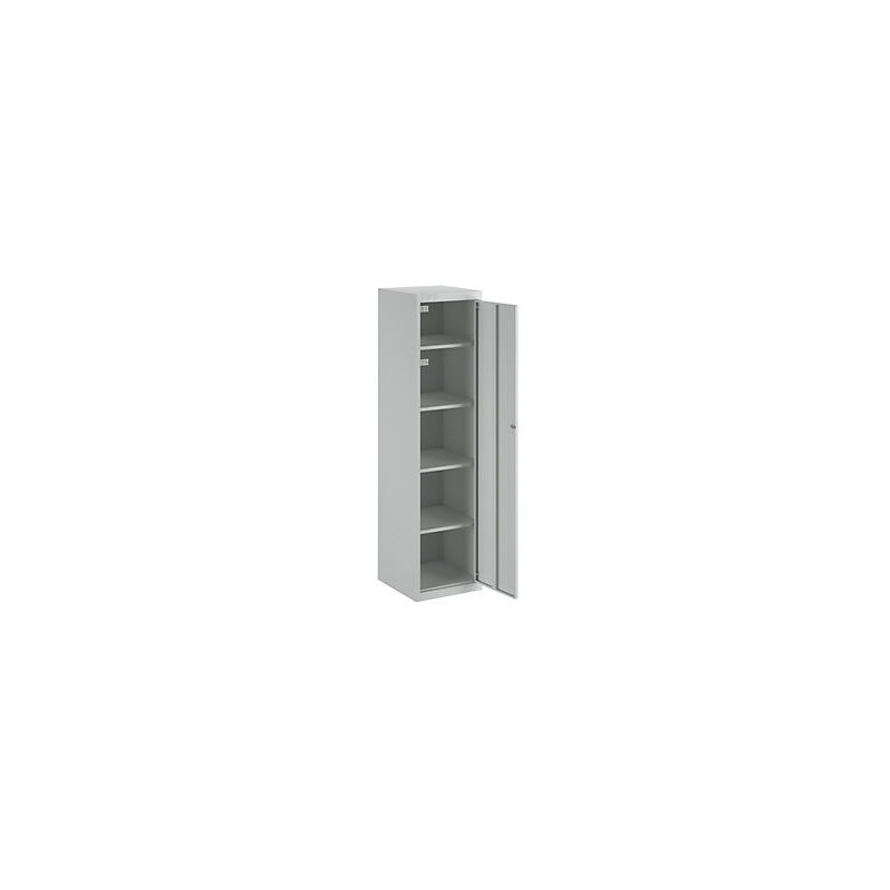 Guardaroba modulare, con elementi di base e aggiuntivi, alt. x largh. x prof. 1800 x 450 x 500 mm, 4 ripiani, grigio chiaro, modulo portante. Fornitura = smontato. Versione = elemento di base. Altezza = 1800 mm. Profondità = 500 mm. Larghezza = 450 mm. Colore corpo = grigio chiaro RAL 7035. Colore porta = grigio chiaro RAL 7035. Serratura = serratura a cilindro di sicurezza differenziata. Numero scomparti in larghezza = 1 pz. Numero scomparti = 1 pz. Larghezza scomparti = 450 mm. Materiale = lamiera d'acciaio, verniciata a polvere. Altezza armadietto = 1800 mm. Dotazione interna = 4 ripiani. Larghezza interna = 387 mm. Altezza interna = 360 / 265 mm. Profondità interna = 458 mm. Tipo di porta = anta a battente. Numero chiavi = 2 pz. Altezza scomparti = 360 / 265 mm. Larghezza ripiani = 450 mm. Profondità ripiani = 500 mm. Altezza zoccolo = 50 mm. Struttura = sistema a innesto. Superficie = con verniciatura a forno. Sistema di armadietti per spogliatoi da combinare. Elementi di base e