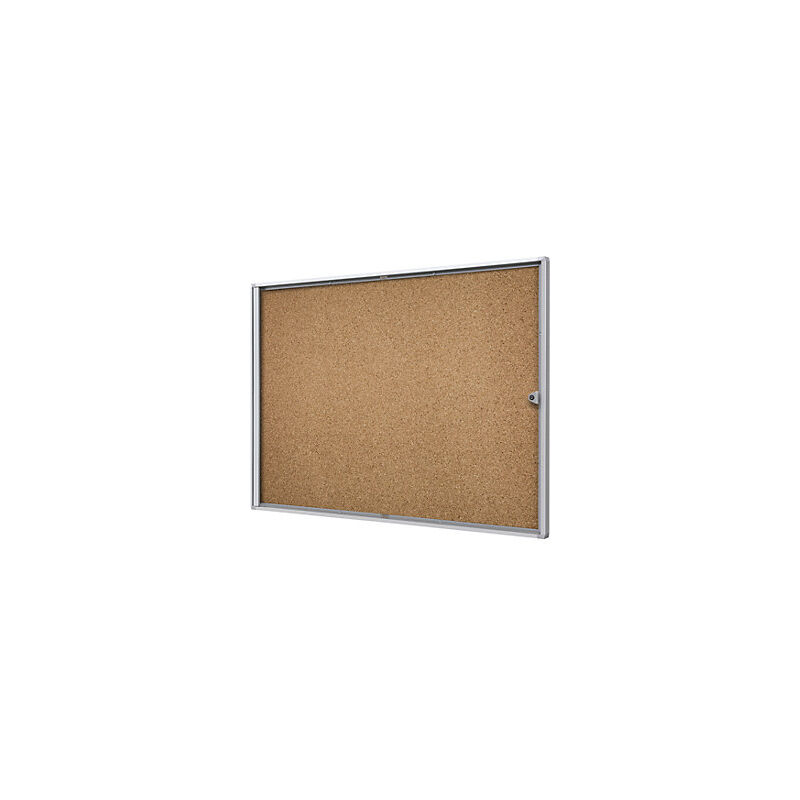 Bacheca info per interni, parete posteriore in sughero, 8 fogli UNI A4, alt. x largh. 655 x 931 mm. Fornitura = montato. Capacità fogli UNI A4 = 8 (2x4) pz. Altezza esterna = 655 mm. Larghezza esterna = 931 mm. Profondità esterna = 26 mm. Profondità interna = 13 mm. Versione bacheche = forabili con puntine. Materiale del vetro = plexiglas. Spessore del vetro = 3 mm. Materiale cornice/telaio = alluminio, anodizzato. Colore cornice = argento. Materiale parete posteriore = sughero. Colore parete posteriore = simil-sughero. Tipo di porta = anta a battente. Serratura = serratura a cilindro di sicurezza con 2 chiavi. Peso = 6.45 kg. Luogo d'impiego = per interni. Cornice = con spigoli arrotondati. Versione piatta con cornice in alluminio anodizzato color argento e spigoli arrotondati in plastica, per un impiego sicuro negli edifici pubblici. Per affiggere gli avvisi pubblici, le norme in materia di lavoro e di sicurezza, le istruzioni d'uso, l'ordinamento interno ecc. Ideali per spazi