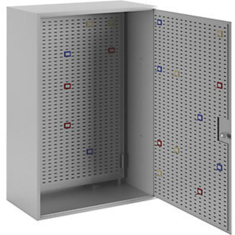 Armadietto portachiavi, grigio chiaro RAL 7035, alt. x largh. x prof. 550 x 380 x 205 mm, per 180 ganci. Fornitura = montato. Numero ganci = 180 pz. Profondità = 205 mm. Larghezza = 380 mm. Altezza = 550 mm. Peso = 13 kg. Serratura = serratura a cilindro con 2 chiavi. Numero ganci max = 180 pz. Numero fori = 4 pz. Numero ante = 1 pz. Colore = grigio chiaro RAL 7035. Tipo di prodotto = armadietti portachiavi. Ganci per chiavi collocabili in modo personalizzato. Con quattro fori nella parete posteriore, Ø 6 mm, per il fissaggio a muro o all'interno di un mobile. Verniciatura in grigio chiaro RAL 7035. Corpo a parete singola con frontalino piatto e anta con battuta a filo. Bordino su tutti i lati. Serratura a cilindro di serie, 2 chiavi incluse. I ganci e le targhette portachiavi devono essere ordinati separatamente.
