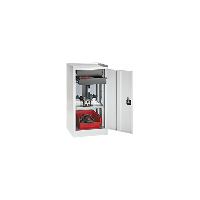 L'armadietto portattrezzi e di servizio è l'alleato perfetto per tenere in ordine e a portata di mano tutti gli utensili e gli accessori di lavoro. Realizzato in resistente acciaio con verniciatura a polvere, offre due cassetti e un ripiano regolabile in altezza per una massima versatilità. I cassetti e i ripiani sono estraibili su guide telescopiche, garantendo facilità d'uso e resistenza. Con una portata di 30 kg per ripiano, questo armadietto ti permette di organizzare al meglio lo spazio e avere sempre tutto a portata di mano. Con il suo design elegante in grigio chiaro, si integra perfettamente in qualsiasi ambiente e migliorare la tua vita lavorativa. Acquista ora e goditi la praticità e l'efficienza di questo prodotto di qualità!
