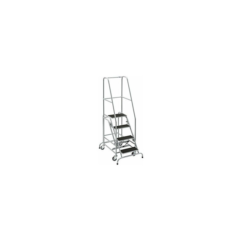 Scala a palchetto mobile, inserti gradini in gomma rigata, con 4 gradini. Fornitura = in parte smontato. N. gradini, piattaforma inclusa = 4 pz. Materiale telaio = acciaio, verniciato a polvere. Colore telaio = alluminio brillante RAL 9006. Larghezza piattaforma = 408 mm. Profondità piattaforma = 228 mm. Larghezza gradini = 408 mm. Profondità gradini = 162 mm. Salita = su un lato. Versione da salita = gradini. Materiale gradini = gomma rigata. Altezza piattaforma = 930 mm. Altezza totale = 1925 mm. Profondità totale = 935 mm. Larghezza totale = 685 mm. Tipo di prodotto = scale a palchetto. Diametro ruote = 100 mm. Peso = 35.1 kg. Angolo d'inclinazione = 55°. Ideali per il prelievo di merci da scaffali. Durante la salita la scala si abbassa grazie all'ammortizzatore a gas. Senza carico la scala è leggera e facile da spostare. Robusta struttura in tubi d'acciaio, verniciata a polvere in alluminio brillante RAL 9006. Gradini a scelta in robusto pannello fenolico zigrinato, gomma rigata