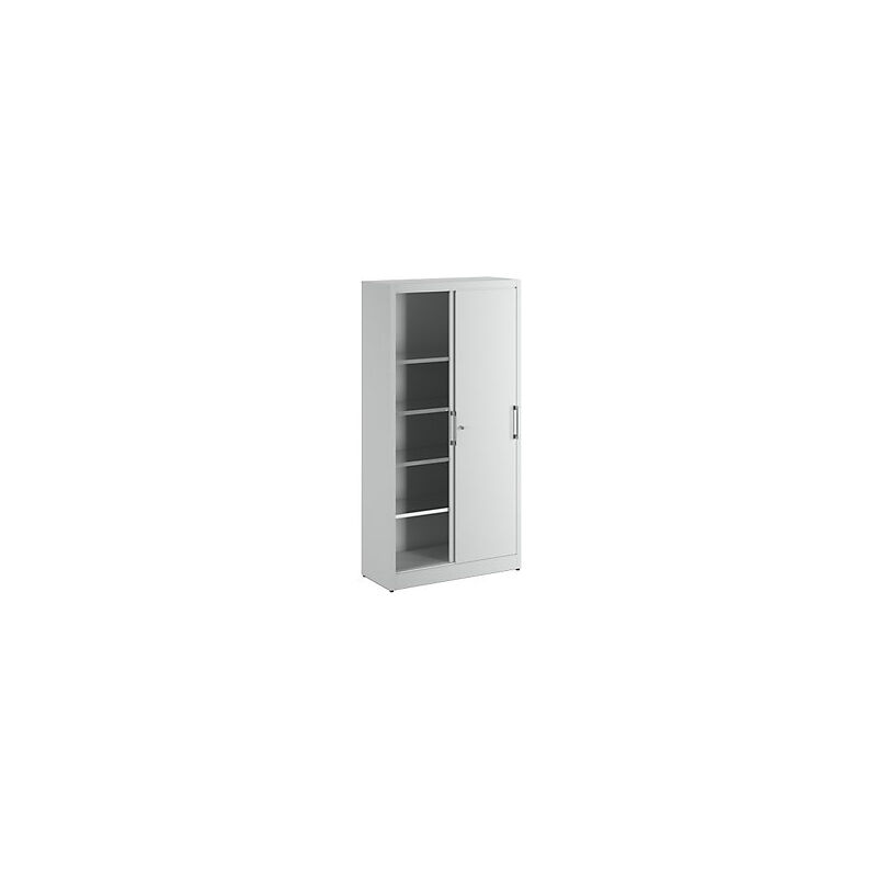L'armadietto con ante scorrevoli di altezza 1950 mm è la soluzione ideale per ottimizzare lo spazio di archiviazione in azienda, ufficio o magazzino. Con 4 ripiani regolabili in altezza e una portata di 75 kg per ripiano, offre una capacità di stoccaggio versatile e resistente. Realizzato in robusta lamiera d'acciaio, con ante scorrevoli che permettono un'apertura senza ingombro, è pratico e funzionale. Dotato di serratura a cilindro e finiture di qualità, è progettato per durare nel tempo e migliorare l'organizzazione del lavoro. Con dimensioni ottimali e un design elegante, questo armadietto sarà un prezioso alleato nella gestione dei tuoi spazi.