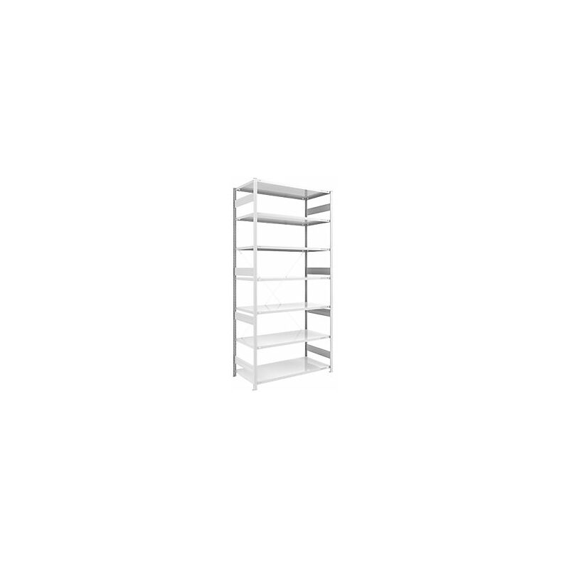Scaffale a innesto per carichi pesanti, RAL 7035, altezza scaffale 3000 mm, scaffale portante, largh. x prof. 1300 x 800 mm. Fornitura = smontato. Tipo di scaffale = scaffale portante. Portata ripiani = 330 kg. Portata campata = 2100 kg. Altezza scaffale = 3000 mm. Larghezza totale = 1360 mm. Profondità totale = 835 mm. Materiale = acciaio. Superficie = verniciatura plastica. Struttura = a innesto. Numero ripiani = 7 pz. Colore montanti = grigio chiaro RAL 7035. Colore ripiani = grigio chiaro RAL 7035. Passo di regolazione altezza = 25 mm. Molto robusti per carichi elevati. Con zincatura e verniciatura plastica in grigio chiaro RAL 7035. Con un lato utile. Ripiani indeformabili regolabili in altezza con passo di 25 mm. Telai portanti con piastre di connessione a incastro e piastre di appoggio salvapavimento. Dimensioni esterne Larghezza: scaffale portante 1060 / 1360 mm, scaffale aggiuntivo 1010 / 1310 mm. Profondità: profondità ripiani + 35 mm. Portata per campata: 2000 mm