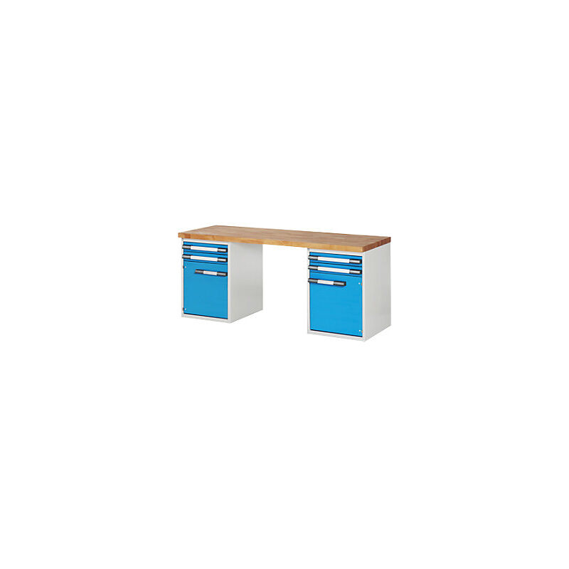Banco di lavoro, sistema modulare Serie 7000, 4 cassetti, 2 ante, largh. x prof. 2000 x 700 mm. Fornitura = montato. Larghezza piano = 2000 mm. Profondità piano = 700 mm. Tipo di piano = piano in faggio massello. Spessore piano = 40 mm. Numero cassetti = 4 pz. Altezza cassetti = 4x90 mm. Colore corpo = grigio chiaro RAL 7035. Materiale telaio = acciaio, verniciato a polvere. Numero ante = 2 pz. Altezza porta = 2x540 mm. Colore telaio = grigio chiaro RAL 7035. Numero ripiani = 2 pz. Tutti i componenti sono sempre sostituibili e ampliabili. Profondità 700 o 900 mm - per una superficie di lavoro ancora maggiore. Piano di lavoro in faggio massiccio - legno proveniente da silvicoltura sostenibile e certificata PEFC. Consegnati montati e pronti all'uso! Struttura in acciaio verniciata a polvere in grigio chiaro RAL 7035. Consegnati montati e pronti all'uso. Disponibili gratis: 15 colori - fino a 225 combinazioni di colori! I divisori per cassetti adatti sono disponibili online tra gli
