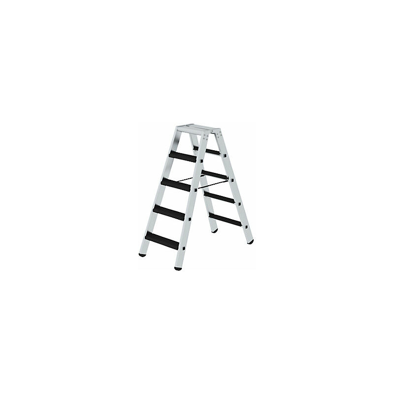 Scala a libro a gradini, salita su due lati, versione imbottita, 2 x 5 gradini. Fornitura = montato. Tipo di prodotto = scale a libro a gradini, salita su due lati. Altezza di lavoro = 2725 mm. Salita = su due lati. Versione da salita = gradini. N. gradini, piattaforma inclusa = 2x5 pz. Materiale telaio = alluminio. Materiale gradini = alluminio con rivestimento antisdrucciolo. Profondità gradini = 80 mm. Peso = 8.9 kg. Caratteristiche = pieghevole. Portata = 150 kg. Altezza verticale = 1135 mm. Larghezza esterna in basso = 487 mm. Qualità professionale, ideali per l'uso quotidiano. Robusta struttura in alluminio. Struttura rastremata per un appoggio stabile e sicuro. Robustissime cerniere di sicurezza avvitate in quattro punti. Montanti rinforzati con requisiti superiori a EN 131. Montanti e gradini in profilati estrusi di alluminio. Durevole flangiatura multipla dei gradini e dei pioli. Alta resistenza alla torsione. Distanza gradini 235 mm. Cinghie di fissaggio altamente resistenti.
