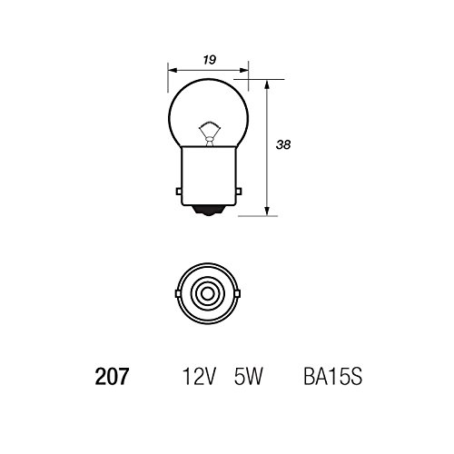 Eurolec, 10 pezzi, lampadina per auto 207 R5W BA15S, 12 V, 5 W adatta per luce di posizione, fanale, luce del numero di targa