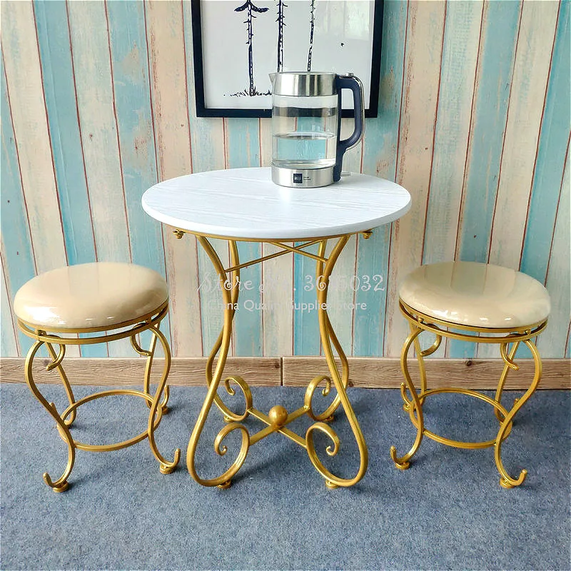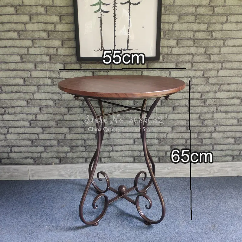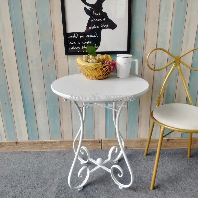 European Iron Leg Small Table Sofa Round Coffee Table for Living Room Simple Bedside Table Balcony Ins Wooden Tea Table Desk