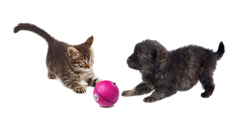 La palla rotola cambiando direzione animando l'animale al continuo gioco