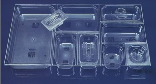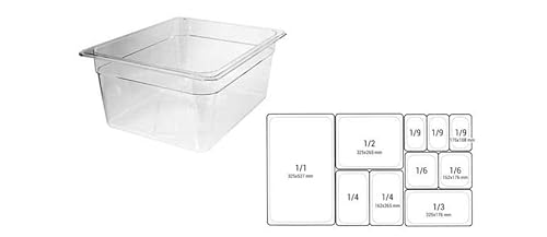 Euroshoppingonline Vasca Contenitore vaschetta per Alimenti in policarbonato Trasparente espositore da banco Box Gastronomia bancone Pizzeria ristoranti (1/1 53x32,5x10 cm)