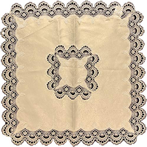 EUROSTYLE Art. reggia centrotavola sopra Mobile copritavolo tovaglia sopra Comodino in Raso Jacquard con Pizzo Macrame (Centrotavola Quadrato 85x85cm)