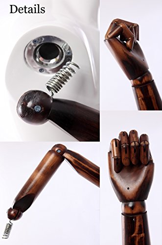 Eurotondisplay Manichino da sarto, fodera in lino, parte superiore del corpo e testa, braccia e dita in legno, regolabile a piacere, supporto in legno scuro (A-9-T-G maschio)