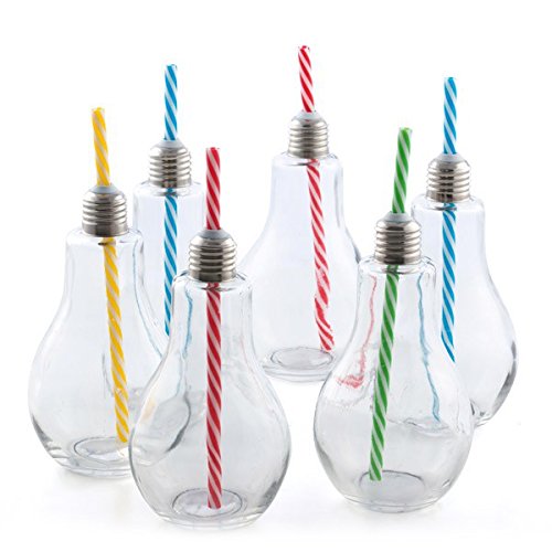 Eurowebb Set di sei bicchieri a forma di LAMPADINE CON cannucce - vetri originali per Apéro o Coktail