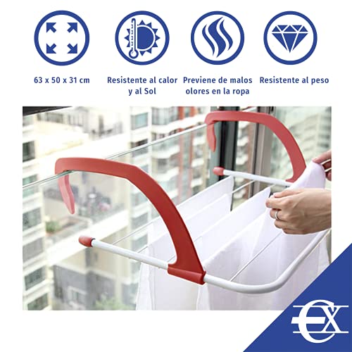 EUROXANTY Stendibiancheria per balcone, compatto e pieghevole, struttura forte e sicura, materiale resistente, 63 x 50 x 31 cm