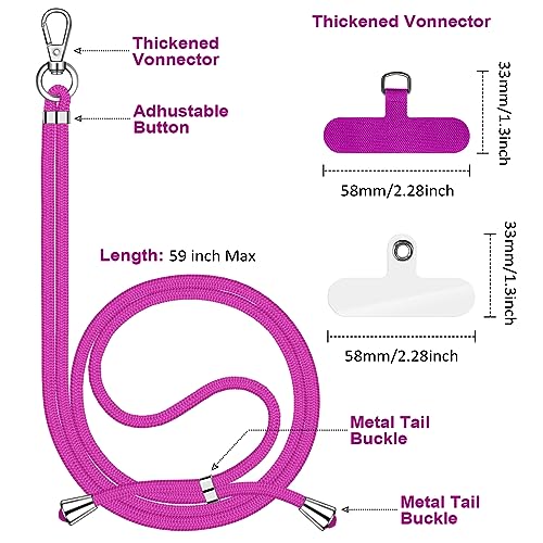 Eurtes 2 collane per cellulare universali, regolabili per il trasporto, cordino per cellulare con 6 toppe, adatto per tutti gli smartphone, per cellulare (nero + magenta)