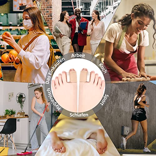 Design ergonomico: la forma delle dita separate corrisponde alla struttura del piede, e sono adatte sia al piede sinistro che destro. La lunghezza del manicotto è per l'alluce e la seconda Progettato per le dita dei piedi. Per alleviare il dolore in caso di calli morbidi, dita sovrapposte, problemi alle unghie e alluce valgo. Separare delicatamente e allineare le dita dei piedi. Mantiene la sua forma anche dopo molti utilizzi.