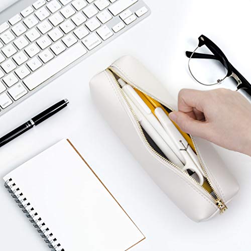 Eusbon Astuccio per matite in poliuretano, portatile, per cancelleria, grande capacità, per cosmetici, per studenti universitari, beige
