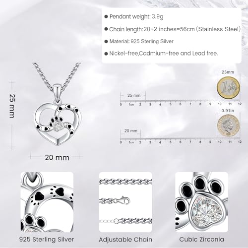 Eusense Ciondolo con Zampa di Cane Cuore Collana Argento 925 Gioielli Regalo per Donne Ragazze