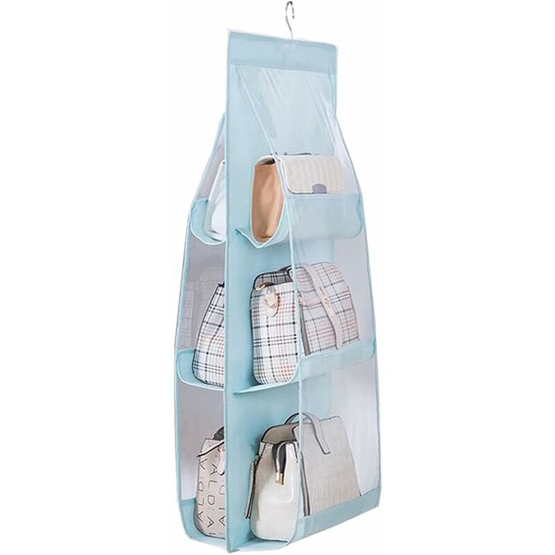 Sei ancora preoccupato per le troppe borse e lo spazio disordinato Forse questa borsa appesa potrebbe aiutarti! Questo organizer per borsa in tessuto Oxford ha 6 scomparti, che è traspirante e resistente. Il PVC trasparente ti aiuterà a scegliere rapidamente;