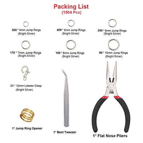 EuTengHao 1504pcs Open Jump Ring Lobster Clasps Kit Kit di strumenti di riparazione di gioielli con pinze Pinzette Accessori per creazione di gioielli (argento brillante)