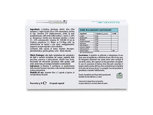 EUTENS Integratore alimentare pressione arteriosa • Circolazione sangue • Integratore pressione arteriosa Con Oleuropeina Glutatione Citrullina Vit. D Coenzima Q10| Made In Italy