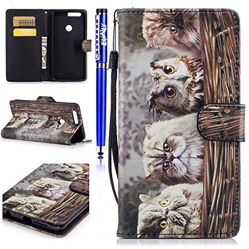 EUWLY Case Cover per Huawei Honor 8,Ultra Slim Sottile Custodia Protettiva Portafoglio pelle PU Case Lusso Flip Stand Slot Funzione di Supporto Leather Wallet Case per Huawei Honor 8-Gatto Scadente