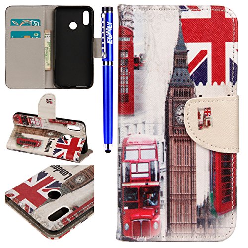 EUWLY Custodia Huawei P20 Lite, Cover Huawei P20 Lite Originale Portafoglio Custodia in Pelle con Slot per Schede Stile Libro Copertura Protective Flip Cover Case Funzione di Supporto e Chiusura Magnetica Protettiva Pelle Cover Ultra Slim Elegante Colorata PU Leather Wallet Custodia Antiurto Antiscivolo Antigraffio Bumper Shell Fronte Retro Full Body Cover Protettiva Caso Cuoio Guscio del Telefono Cellulare per Huawei P20 Lite, Campanile Autobus